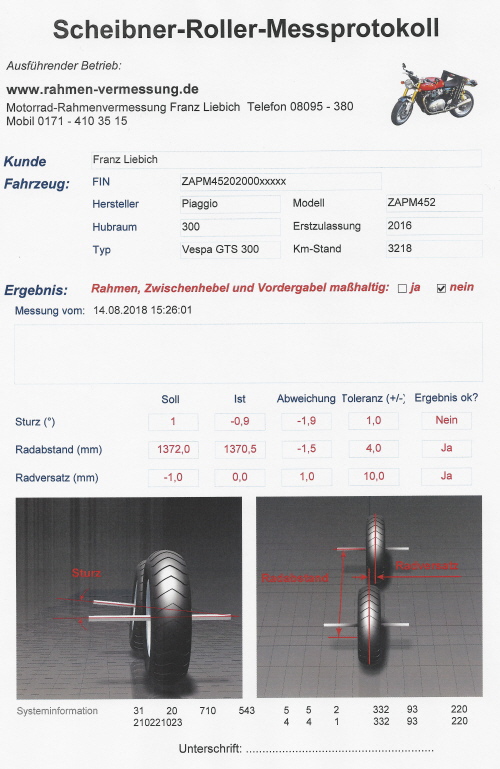 Scheibner-Roller-Messprotokoll erhalten sie das Messergebnis von Rahmen, Zwischenhebel