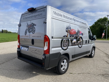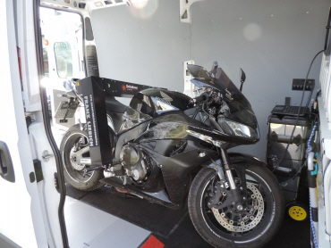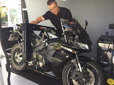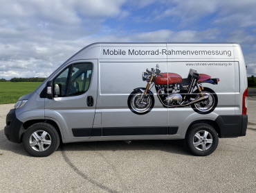 Sofern Sie über keinen geeigneten Platz oder Raum zur Rahmenvermessung verfügen, können wir ihr Motorrad in unserem Vermessungsfahrzeug vermessen.